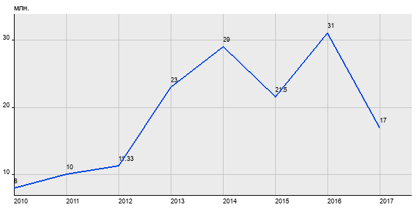 8 млн. руб, а в 2017 году - 17 млн. руб. Таким образом, средняя стоимость двухкомнатных квартир в районе "Сокольники" за