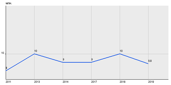 8 млн. руб, а в 2019 году - 8.8 млн. руб. Таким образом, средняя стоимость трёхкомнатных квартир в районе "Зябликово" за