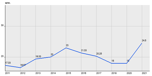 17.33 млн. руб, а в 2021 году - 24.5 млн. руб. Таким образом, средняя стоимость четырёхкомнатных квартир в районе "Чертаново Центральное" за