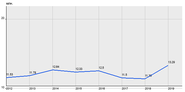 11.53 млн. руб, а в 2019 году - 13.29 млн. руб. Таким образом, средняя стоимость двухкомнатных квартир в районе "Сокол" за