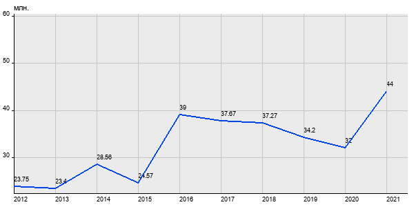23.75 млн. руб, а в 2021 году - 44 млн. руб. Таким образом, средняя стоимость трёхкомнатных квартир в районе "Хамовники" за