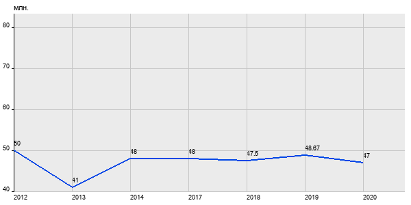 50 млн. руб, а в 2020 году - 47 млн. руб. Таким образом, средняя стоимость четырёхкомнатных квартир в районе "Пресненский" за
