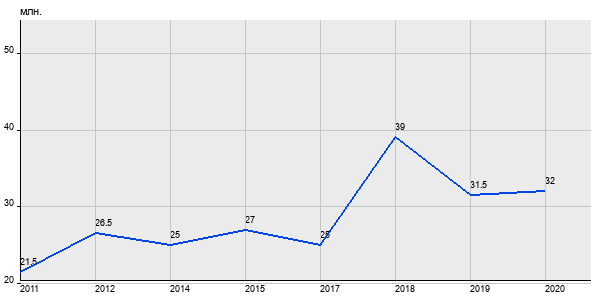 21.5 млн. руб, а в 2020 году - 32 млн. руб. Таким образом, средняя стоимость трёхкомнатных квартир в районе "Дорогомилово" за