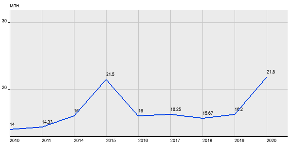 14 млн. руб, а в 2020 году - 21.8 млн. руб. Таким образом, средняя стоимость трёхкомнатных квартир в районе "Кунцево" за