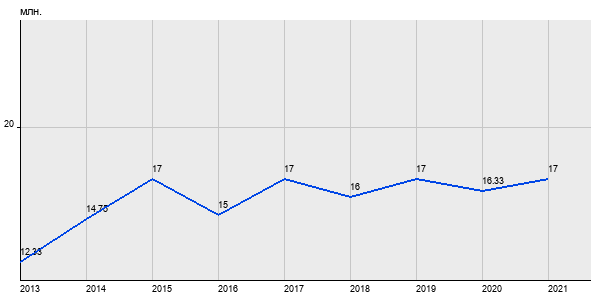 12.33 млн. руб, а в 2021 году - 17 млн. руб. Таким образом, средняя стоимость трёхкомнатных квартир в районе "Беговой" за