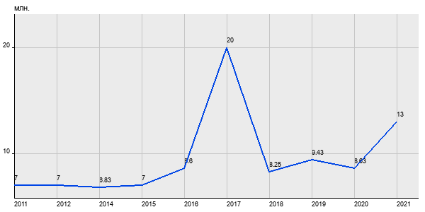 7 млн. руб, а в 2021 году - 13 млн. руб. Таким образом, средняя стоимость двухкомнатных квартир в районе "Хорошёво-Мнёвники" за