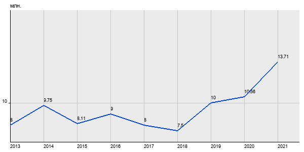 8 млн. руб, а в 2021 году - 13.71 млн. руб. Таким образом, средняя стоимость трёхкомнатных квартир в районе "Можайский" за