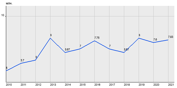 5 млн. руб, а в 2021 году - 7.83 млн. руб. Таким образом, средняя стоимость трёхкомнатных квартир в районе "Бирюлёво Восточное" за