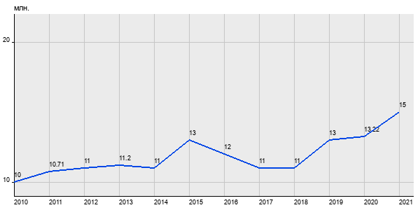 10 млн. руб, а в 2021 году - 15 млн. руб. Таким образом, средняя стоимость трёхкомнатных квартир в районе "Можайский" за