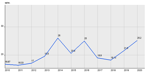 16.67 млн. руб, а в 2020 году - 25.2 млн. руб. Таким образом, средняя стоимость трёхкомнатных квартир в районе "Якиманка" за