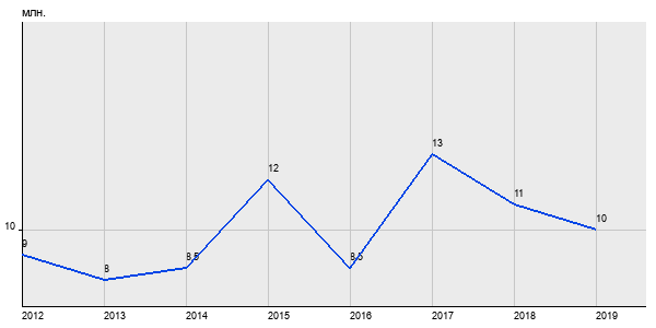 9 млн. руб, а в 2019 году - 10 млн. руб. Таким образом, средняя стоимость двухкомнатных квартир в районе "Басманный" за