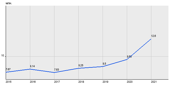 7.67 млн. руб, а в 2021 году - 12.6 млн. руб. Таким образом, средняя стоимость двухкомнатных квартир в районе "Марьино" за