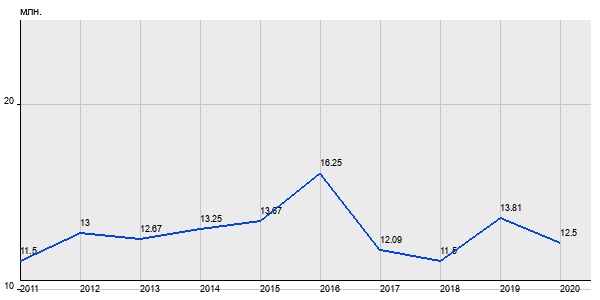 11.5 млн. руб, а в 2020 году - 12.5 млн. руб. Таким образом, средняя стоимость трёхкомнатных квартир в районе "Марьино" за