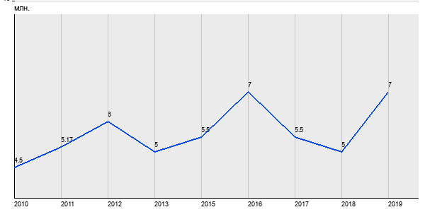 4.5 млн. руб, а в 2019 году - 7 млн. руб. Таким образом, средняя стоимость двухкомнатных квартир в районе "Бирюлёво Восточное" за