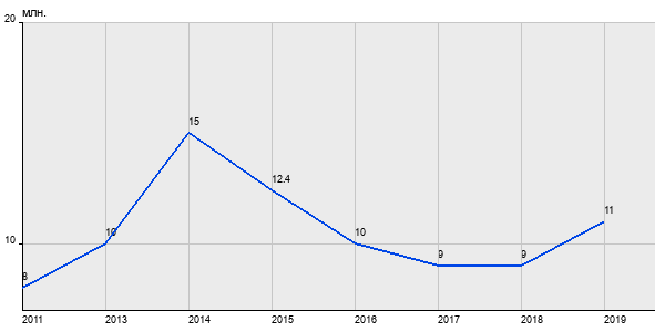 8 млн. руб, а в 2019 году - 11 млн. руб. Таким образом, средняя стоимость двухкомнатных квартир в районе "Марьино" за