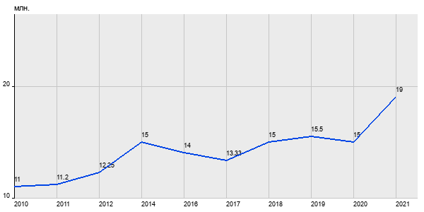 11 млн. руб, а в 2021 году - 19 млн. руб. Таким образом, средняя стоимость трёхкомнатных квартир в районе "Левобережный" за