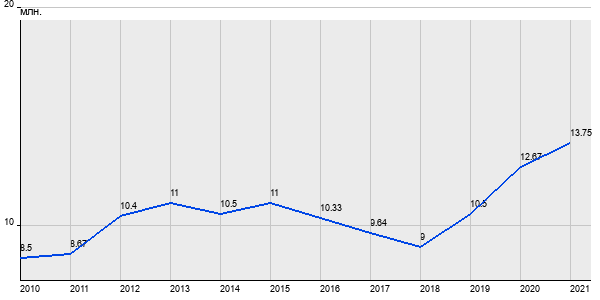 8.5 млн. руб, а в 2021 году - 13.75 млн. руб. Таким образом, средняя стоимость двухкомнатных квартир в районе "Коньково" за