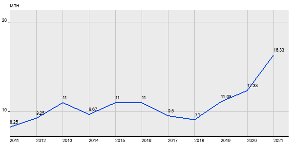 8.25 млн. руб, а в 2021 году - 16.33 млн. руб. Таким образом, средняя стоимость двухкомнатных квартир в районе "Тропарёво-Никулино" за