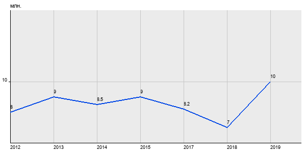 8 млн. руб, а в 2019 году - 10 млн. руб. Таким образом, средняя стоимость двухкомнатных квартир в районе "Гагаринский" за