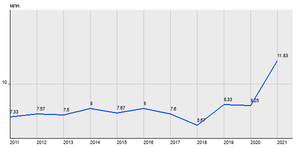 7.33 млн. руб, а в 2021 году - 11.83 млн. руб. Таким образом, средняя стоимость двухкомнатных квартир в районе "Зябликово" за