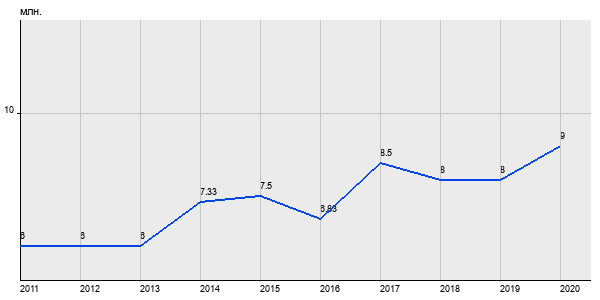 6 млн. руб, а в 2020 году - 9 млн. руб. Таким образом, средняя стоимость однокомнатных квартир в районе "Левобережный" за