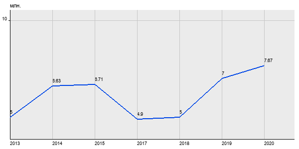 5 млн. руб, а в 2020 году - 7.67 млн. руб. Таким образом, средняя стоимость однокомнатных квартир в районе "Чертаново Южное" за
