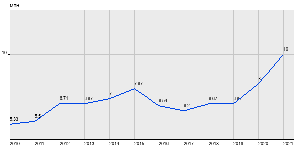 5.33 млн. руб, а в 2021 году - 10 млн. руб. Таким образом, средняя стоимость двухкомнатных квартир в районе "Северное Тушино" за
