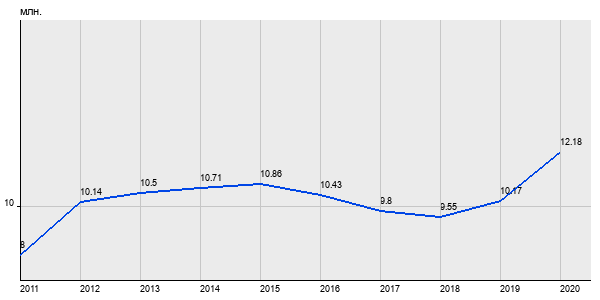 8 млн. руб, а в 2020 году - 12.18 млн. руб. Таким образом, средняя стоимость двухкомнатных квартир в районе "Ясенево" за