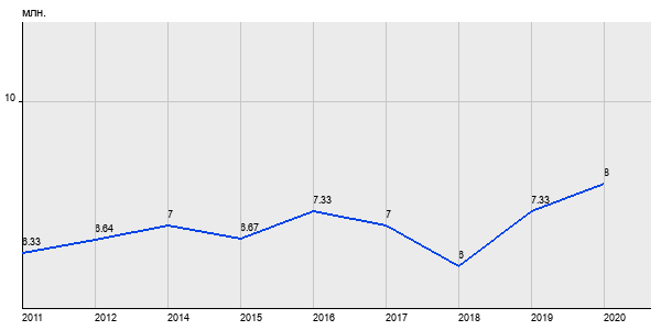 6.33 млн. руб, а в 2020 году - 8 млн. руб. Таким образом, средняя стоимость однокомнатных квартир в районе "Нагорный" за