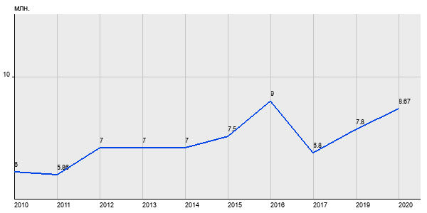 6 млн. руб, а в 2020 году - 8.67 млн. руб. Таким образом, средняя стоимость однокомнатных квартир в районе "Мещанский" за