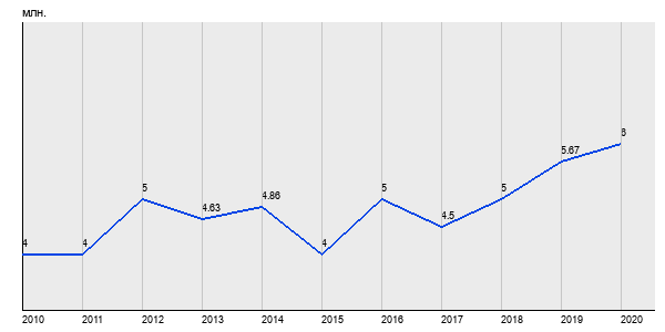 4 млн. руб, а в 2020 году - 6 млн. руб. Таким образом, средняя стоимость однокомнатных квартир в районе "Чертаново Южное" за