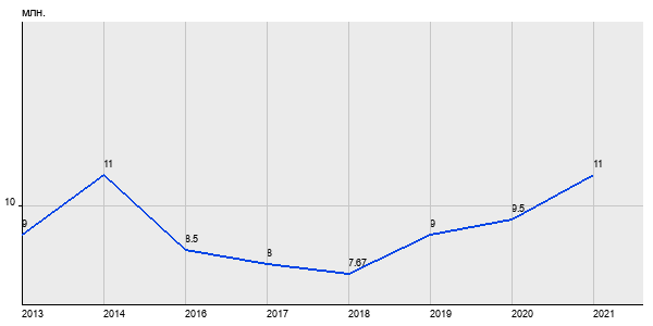 9 млн. руб, а в 2021 году - 11 млн. руб. Таким образом, средняя стоимость двухкомнатных квартир в районе "Южное Бутово" за