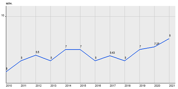 5 млн. руб, а в 2021 году - 8 млн. руб. Таким образом, средняя стоимость однокомнатных квартир в районе "Северное Медведково" за