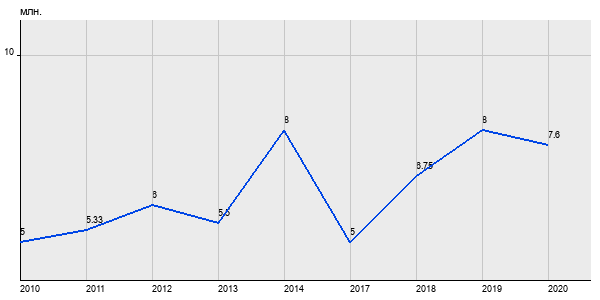 5 млн. руб, а в 2020 году - 7.6 млн. руб. Таким образом, средняя стоимость однокомнатных квартир в районе "Сокольники" за