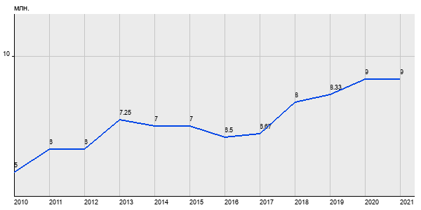 5 млн. руб, а в 2021 году - 9 млн. руб. Таким образом, средняя стоимость двухкомнатных квартир в районе "Ховрино" за