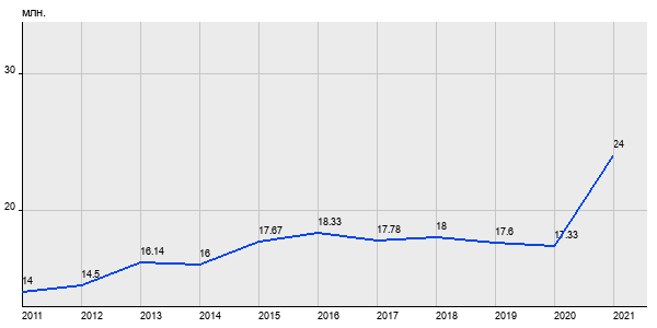 14 млн. руб, а в 2021 году - 24 млн. руб. Таким образом, средняя стоимость трёхкомнатных квартир в районе "Фили-Давыдково" за