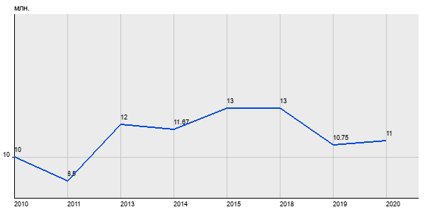 10 млн. руб, а в 2020 году - 11 млн. руб. Таким образом, средняя стоимость двухкомнатных квартир в районе "Мещанский" за