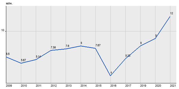 6.5 млн. руб, а в 2021 году - 12 млн. руб. Таким образом, средняя стоимость однокомнатных квартир в районе "Коньково" за