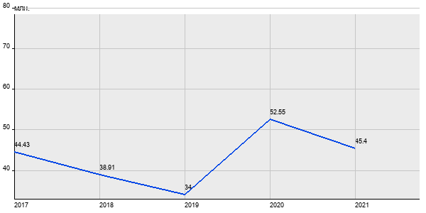 44.43 млн. руб, а в 2021 году - 45.4 млн. руб. Таким образом, средняя стоимость четырёхкомнатных квартир в районе "Хорошёво-Мнёвники" за