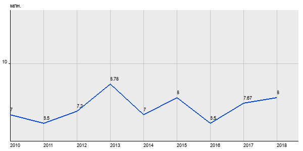 7 млн. руб, а в 2018 году - 8 млн. руб. Таким образом, средняя стоимость двухкомнатных квартир в районе "Выхино-Жулебино" за