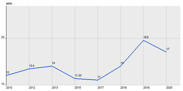 12 млн. руб, а в 2020 году - 17 млн. руб. Таким образом, средняя стоимость однокомнатных квартир в районе "Дорогомилово" за