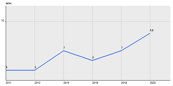 5 млн. руб, а в 2020 году - 8.8 млн. руб. Таким образом, средняя стоимость двухкомнатных квартир в районе "Очаково-Матвеевское" за