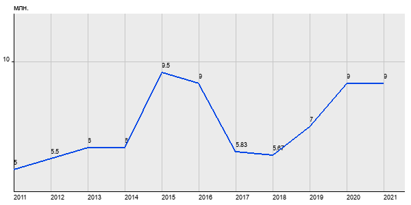 5 млн. руб, а в 2021 году - 9 млн. руб. Таким образом, средняя стоимость двухкомнатных квартир в районе "Гольяново" за