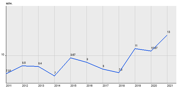 7.33 млн. руб, а в 2021 году - 13 млн. руб. Таким образом, средняя стоимость однокомнатных квартир в районе "Отрадное" за