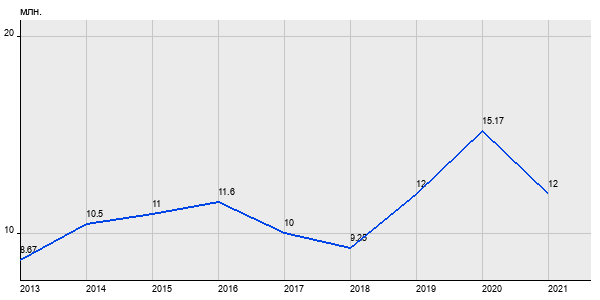 8.67 млн. руб, а в 2021 году - 12 млн. руб. Таким образом, средняя стоимость двухкомнатных квартир в районе "Пресненский" за