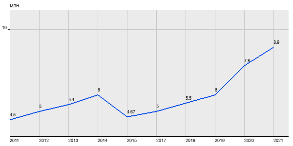 4.5 млн. руб, а в 2021 году - 8.9 млн. руб. Таким образом, средняя стоимость однокомнатных квартир в районе "Ново-Переделкино" за