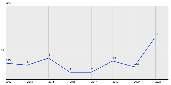 8.25 млн. руб, а в 2021 году - 12 млн. руб. Таким образом, средняя стоимость двухкомнатных квартир в районе "Коньково" за