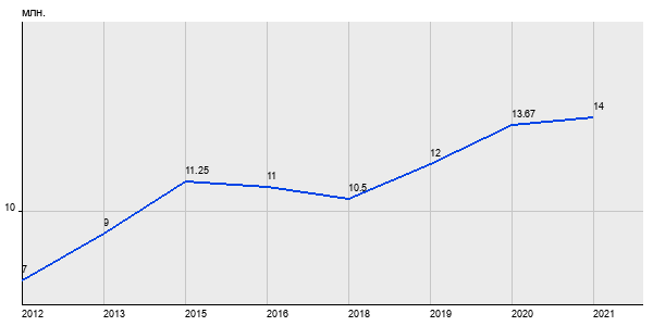 7 млн. руб, а в 2021 году - 14 млн. руб. Таким образом, средняя стоимость двухкомнатных квартир в районе "Западное Дегунино" за