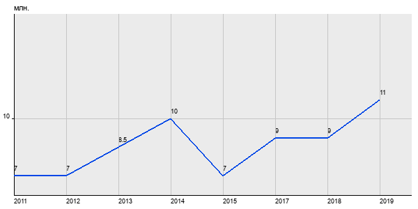 7 млн. руб, а в 2019 году - 11 млн. руб. Таким образом, средняя стоимость двухкомнатных квартир в районе "Раменки" за
