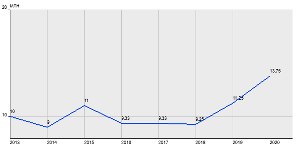 10 млн. руб, а в 2020 году - 13.75 млн. руб. Таким образом, средняя стоимость трёхкомнатных квартир в районе "Беговой" за